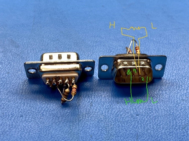 Can terminator: Connect a 120-Ohm resistor between pin1 and pin8 as shown in the following figure: