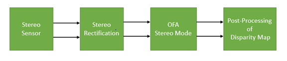 Stereo rectification and post-processing operations are not supported using OFA and must be implemented on other HW accelerators.