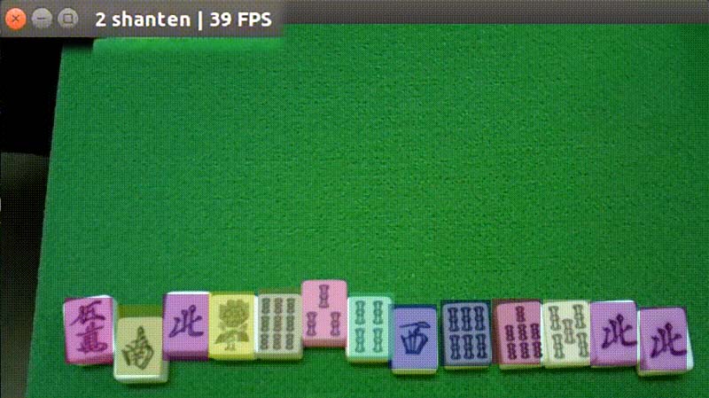 This Realtime Mahjong tile detector calculates shanten, the number of tiles needed for reaching tenpai (a winning hand) in Japanese Riichi Mahjong. The calculated shanten number is overlaid on a screen's status bar. Powered by Jetson Nano, a Logitech C270 webcam and a Japanese Mahjongset.