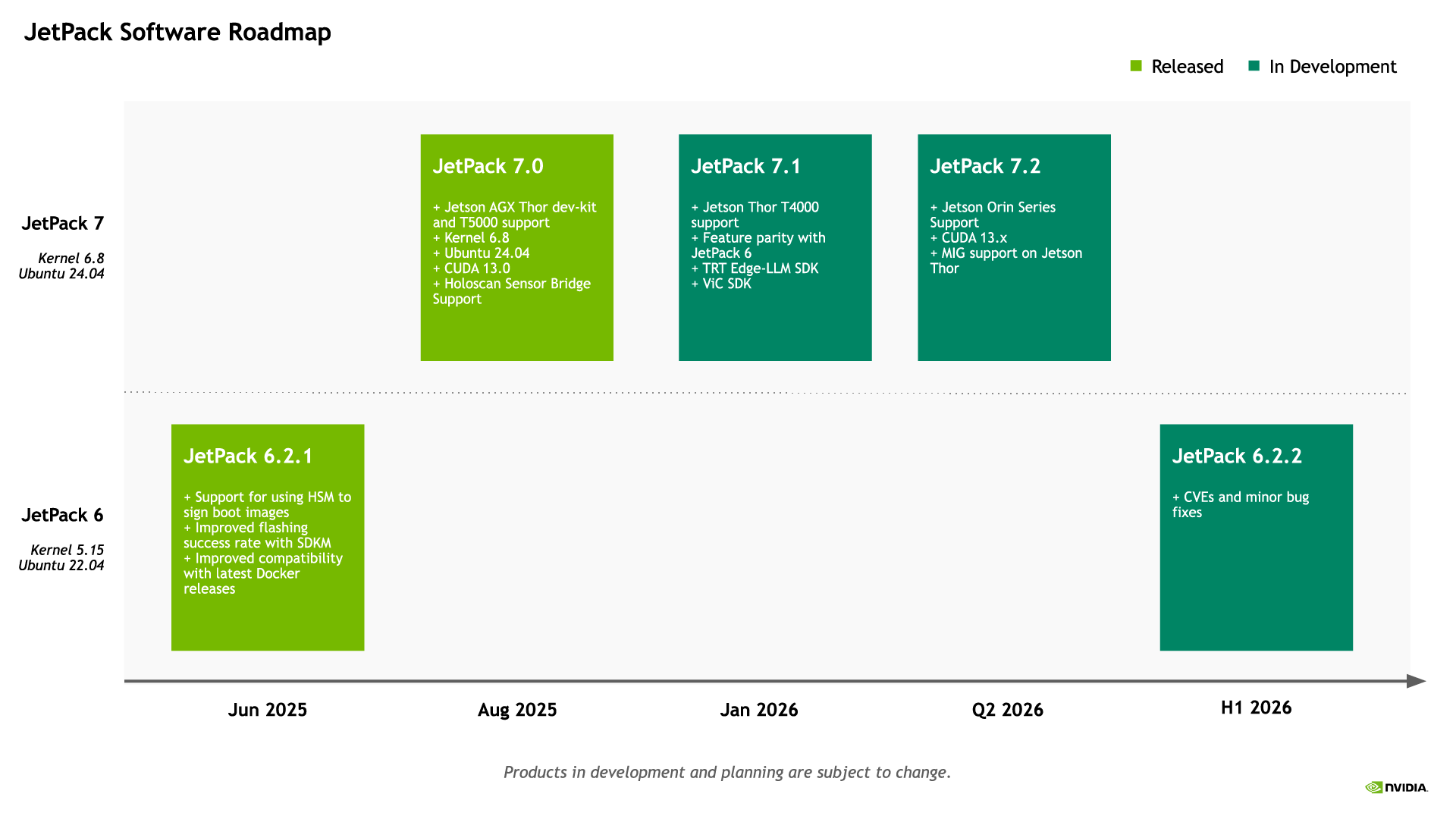Check out the hardware and software roadmap below to learn about upcoming Jetson platform developments.