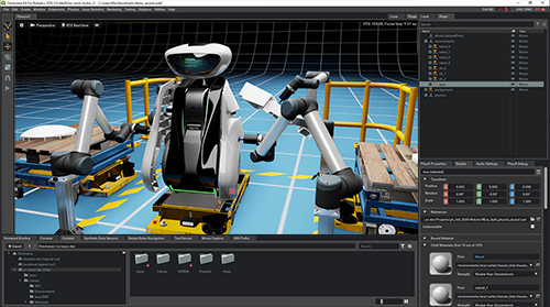Una de las primeras herramientas de simulación que se distribuirá como parte de Omniverse es el simulador físico de código abierto PhysX de NVIDIA, ampliamente utilizado en juegos de computadora. Los objetos que participan en la simulación, sus propiedades, cualquier restricción y cualquier parámetro del solucionador se especifican en un esquema USD personalizado. Kit proporciona funciones para editar la configuración de la simulación, iniciarla y detenerla, y ajustar todos los parámetros.