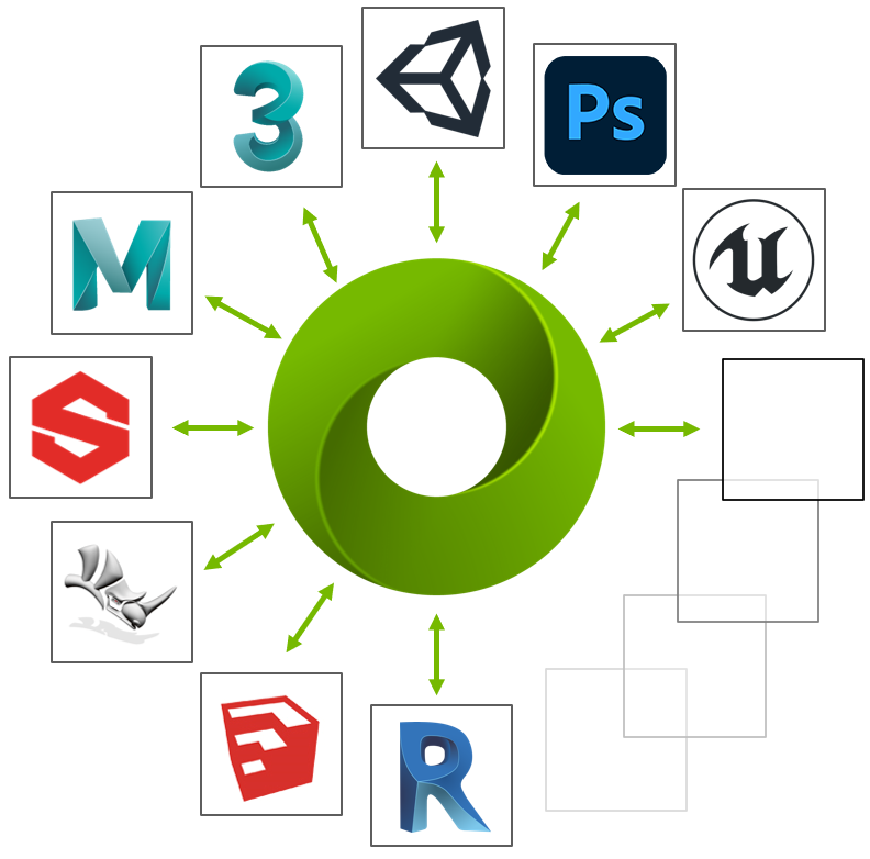 Omniverse tiene como objetivo lograr la interoperabilidad universal entre diferentes aplicaciones y proveedores de ecosistemas 3D. Proporciona actualizaciones de escenas eficientes en tiempo real y se basa en protocolos y estándares abiertos. La plataforma Omniverse está diseñada para actuar como un centro, ya que permite que las nuevas capacidades se expongan como microservicios a cualquier cliente y aplicación conectados.