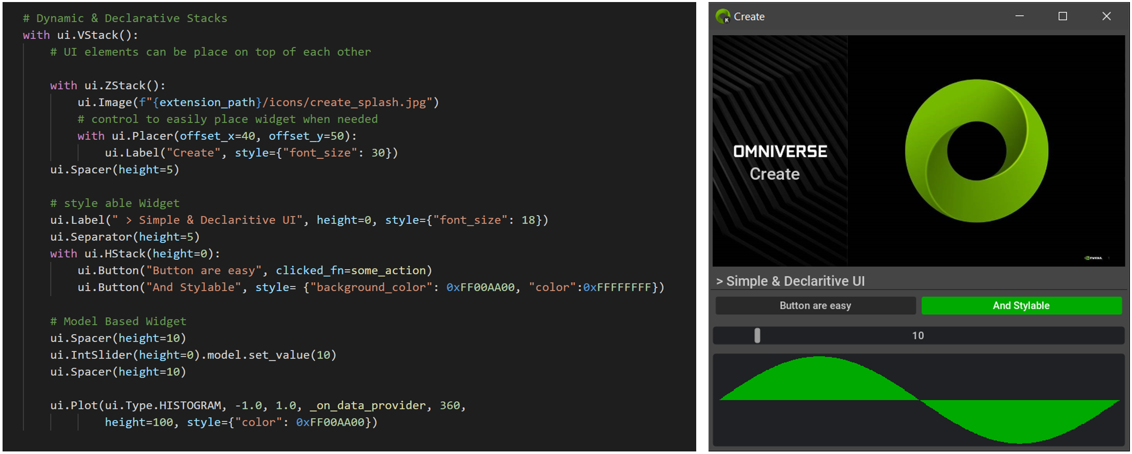 Con el fin de proporcionar una interfaz de usuario acelerada por hardware con alta capacidad de respuesta, que sea liviana y abierta, el framework Omniverse se basa en la biblioteca Dear ImGui.