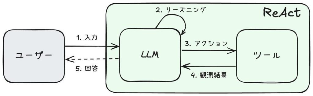 ReAct のプロセスは、以下のステップで進行します。