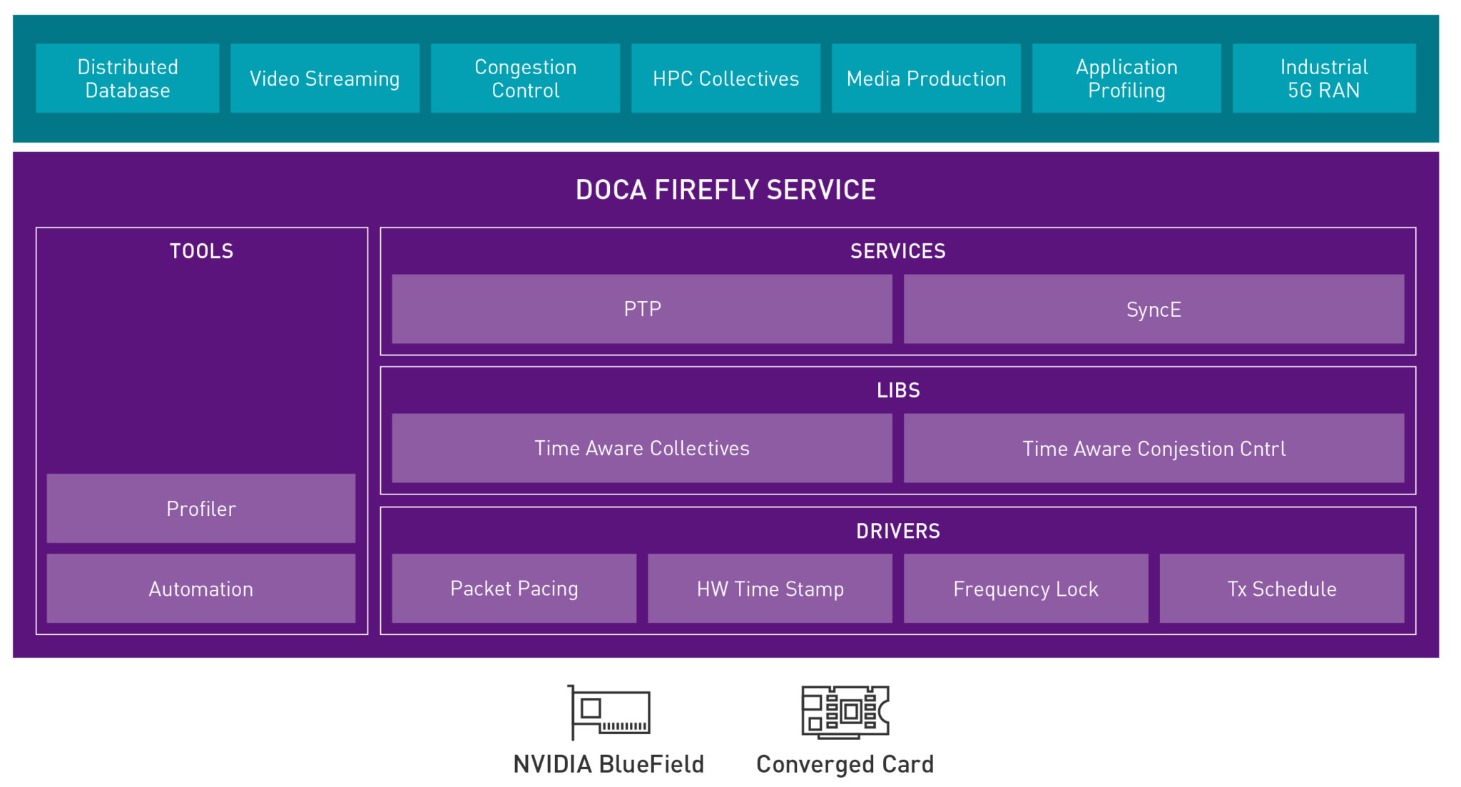 프리시전 타이밍(precision timing)은 엣지에서 코어까지 분산되어 있는 애플리케이션들의 활성화와 가속을 담당하는 중요한 기능입니다. 데이터센터 타이밍 서비스인 DOCA Firefly는 어디서나 고도로 정밀한 시간 동기화를 지원합니다. 나노초 단위의 시간 동기화를 통해 지연에 민감하고 타이밍이 중요한 애플리케이션을 구축할 수 있게 해주죠.