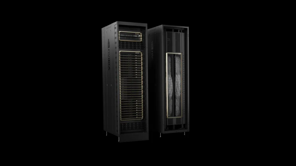랙 규모(Rack-scale) 플랫폼인 NVIDIA GB200 NVL72는 5세대 NVIDIA NVLink 인터커넥트와 NVLink 스위치 칩을 통해 72개의 NVIDIA Blackwell GPU를 하나로 연결합니다. 이를 통해 랙 내 모든 칩 간에 초당 1,800GB(1,800 GB/s)의 양방향 대역폭을 제공합니다. 이렇게 거대한 스케일업(Scale-up) 도메인은 토큰 생성 시 전문가(Expert) 간의 빈번한 데이터 교환이 필수적인 ‘희소 MoE(Sparse MoE)’ 아키텍처 기반 모델에 최적화되어 있습니다.